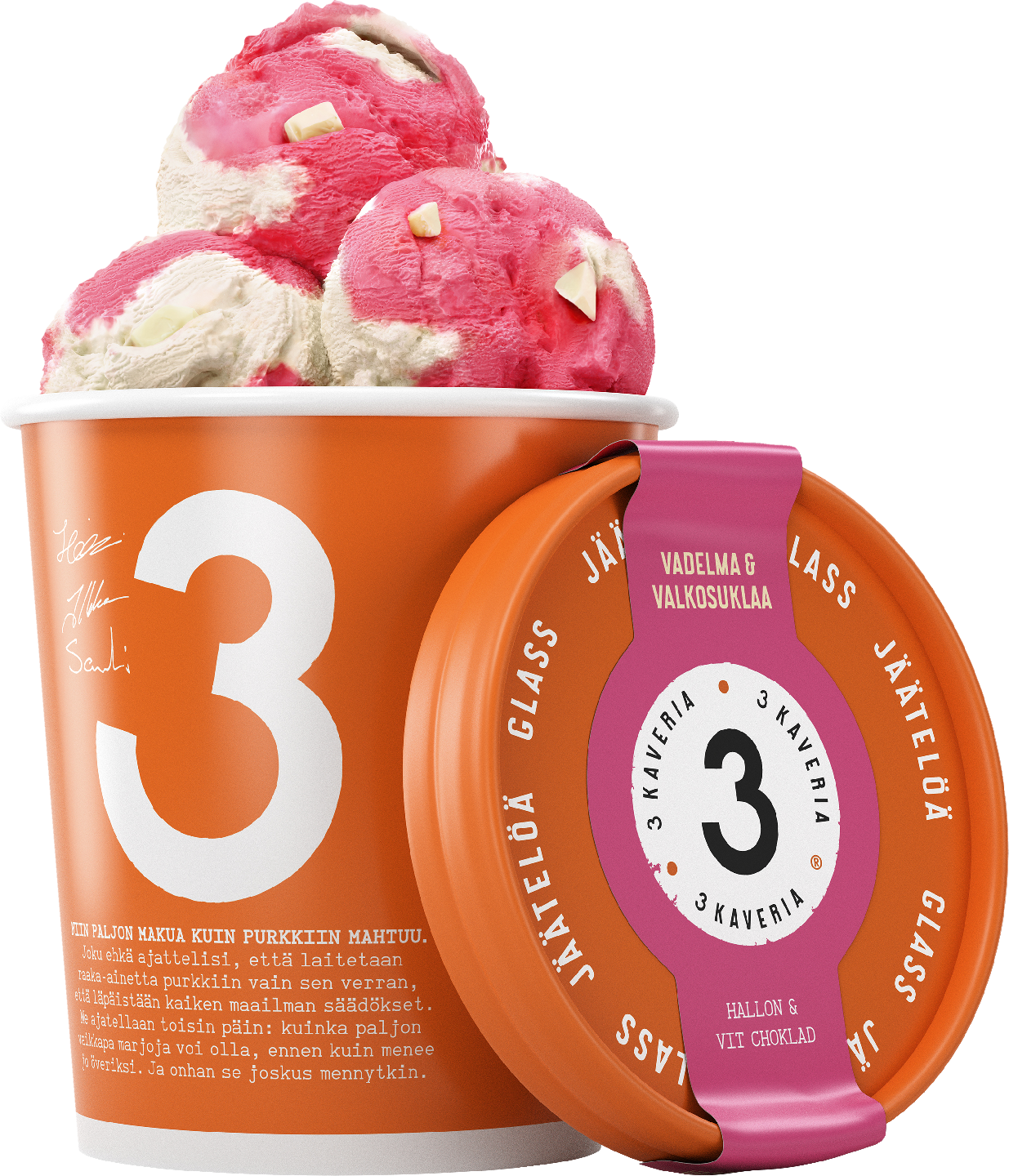 3 Kaverin 500ml Jaatelo Vadelma Valkosuklaa 3 Kaverin Jaatelo