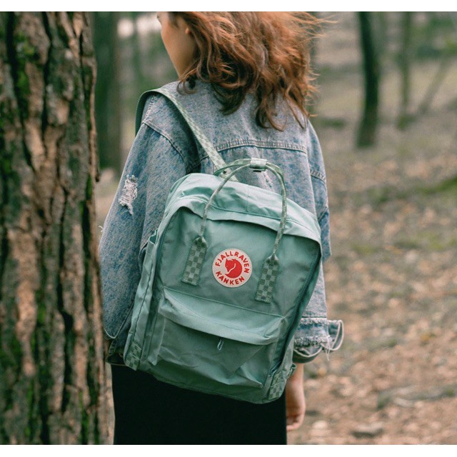 Balo Kanken Classic Fjallraven Frost Green Chess Pattern 16l